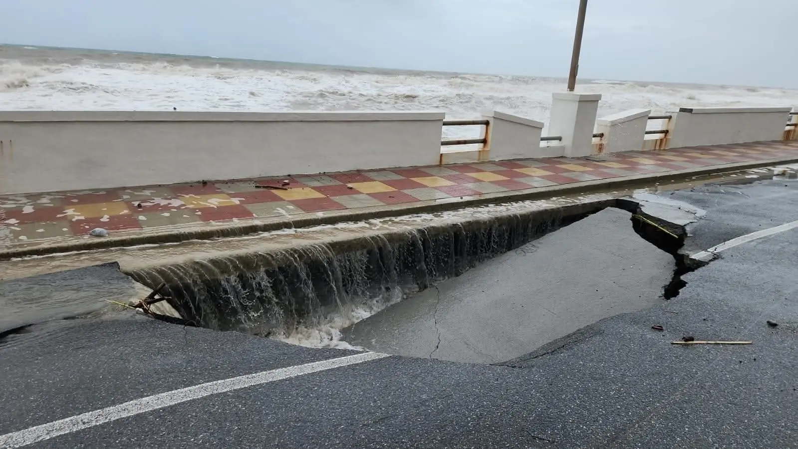 La violenta mareggiata provocata dal maltempo ha causato il crollo di un tratto del lungomare cittadino. Le onde, spinte dal forte vento, hanno eroso la struttura fino al cedimento. Sul posto sono in corso verifiche e sopralluoghi per valutare l’entità dei danni e mettere in sicurezza l’area.