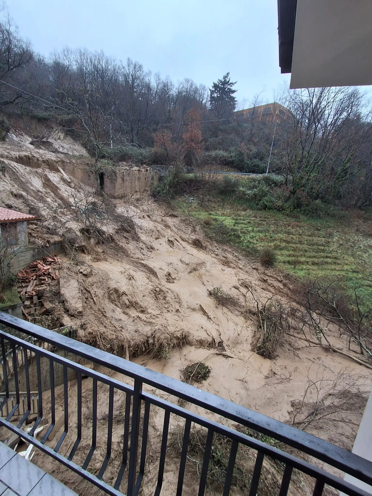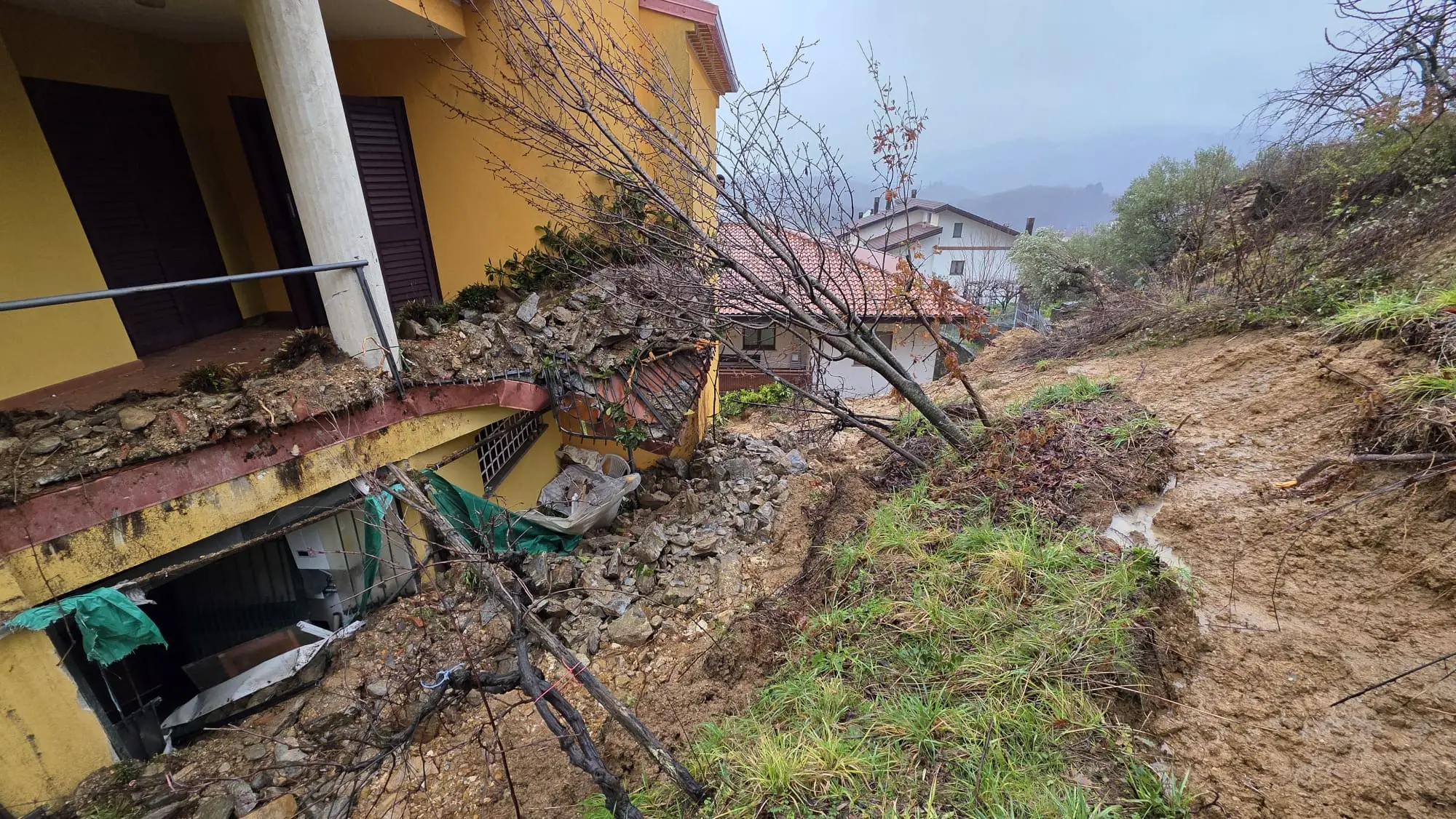 Aprigliano, una frana devasta il cortile di un'abitazione